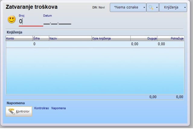 Zatvaranje troškova je dokument kojim se automatski zatvaraju konta iz klase troškova (klasa 4). Nakon što upišete datum zatvaranja, program će automatski u tabeli za knjiženje pripremiti temeljnicu za zatvaranje klase 4. Ukoliko želite nešto izmijeniti u načinu zatvaranja klase 4, dovoljno je da prije spremanja dokumenta, automatski pripremljenu temeljnicu ručno izmijenite ili dopunite prema svojim potrebama.