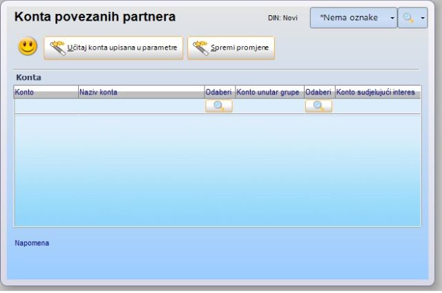 Korisnici koji nemaju povezanih partnera, ne moraju u ovu tabelu ništa upisivati, jer takvim korisnicima zamjenska konta nisu ni potrebna.