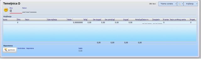 Dokument Temeljnica D objedinjuje funkcije kunske i devizne temeljnice u jednom dokumentu. Knjiženja upisana ovim dokumentom automatski se knjiže i u kunsko knjigovodstvo i u devizno.