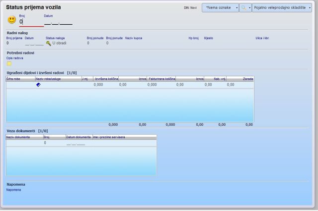 Dokument ne vrši nikakva knjiženja, i nije ga obavezno koristiti, budući da je namjenjen isključivo za dobivanje pregledne informacije o svim događanjima vezanim za određeni prijem vozila.