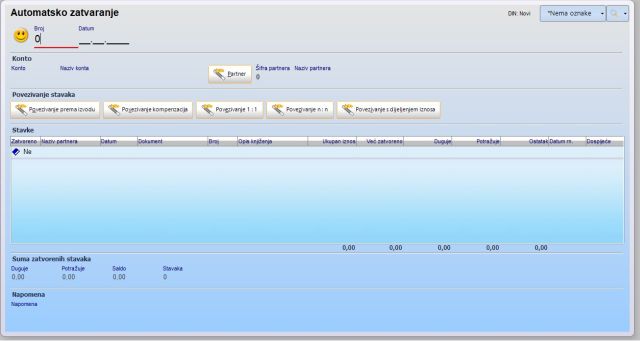 Nakon što unesete podatak o kontu čije stavke zatvarate, klikom na jedan od ponuđenih gumbi, program će izvršiti automatsko zatvaranje.