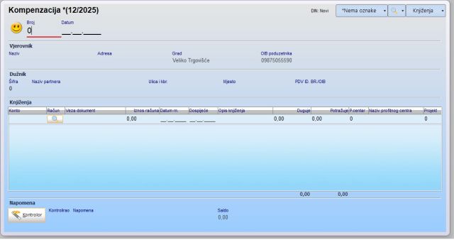 Dokument Kompenzacija *(12/2025) je namijenjen za brzo i jednostavno provođenje kompenzacija.