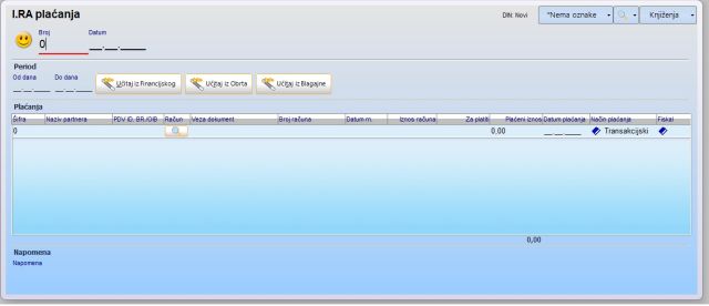 I.RA plaćanja je dokument za evidentiranje plaćanja izlazih računa.