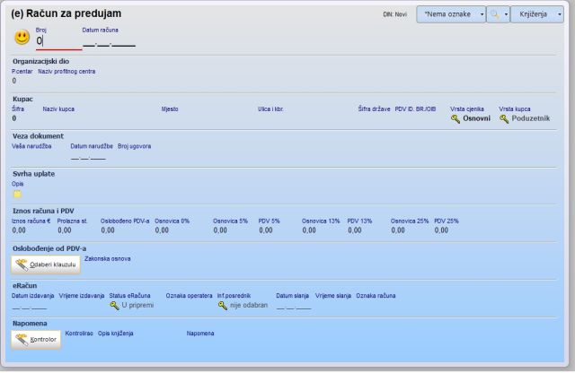 Za račun za predujam, poslovni proces se automatski postavlja na P4, a oznaka vrste računa na 386.
