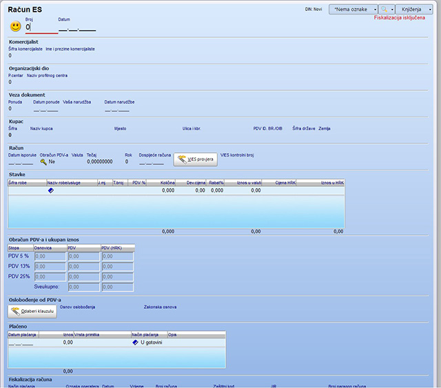 Program razlikuje da li je riječ o isporukama unutar EU ili izvozu na temelju šifre zemlje iz koje je kupac. Budući da u šifarniku zemalja postoji oznaka da li zemlja pripada EU, izborom zemlje istovremeno se definira i karakter trgovine.