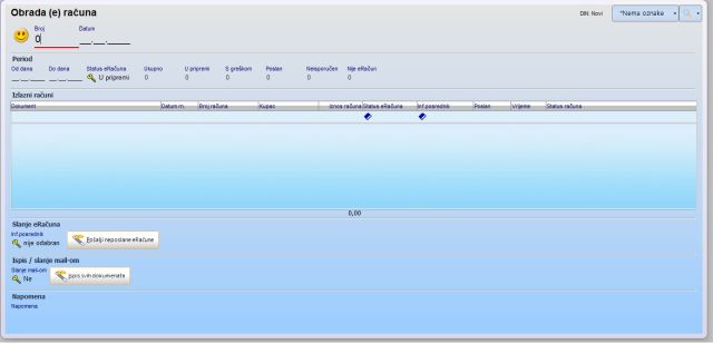 Ovaj dokument, osim za slanje i ispis dokumenata, možete koristi i kao sredstvo za pregled stanja svih računa u nekom periodu. Npr, ako zadate čitav mjesec, dobiti ćete popis svih računa u nekom periodu i njihove statuse. Ako želite provjeriti ima li neposlanih (e) računa, putem ovog dokumenata odmah ćete vidjelti koliko računa u zadanom periodu još uvjek ima status 'u pripremi'.